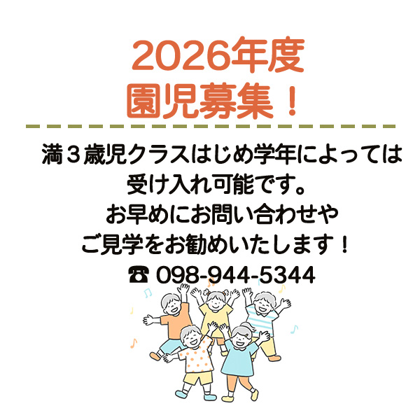 - 満3歳児(2歳半)から6歳児の発達を見極めた、一貫性のある保育を行っています。